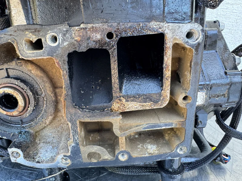 This is a used 2-cylinder powerhead in excellent running condition with low hours. The unit was professionally test-run and operated perfectly prior to removal. Compression is strong and perfectly even across both cylinders, confirming solid mechanical health for a reliable installation